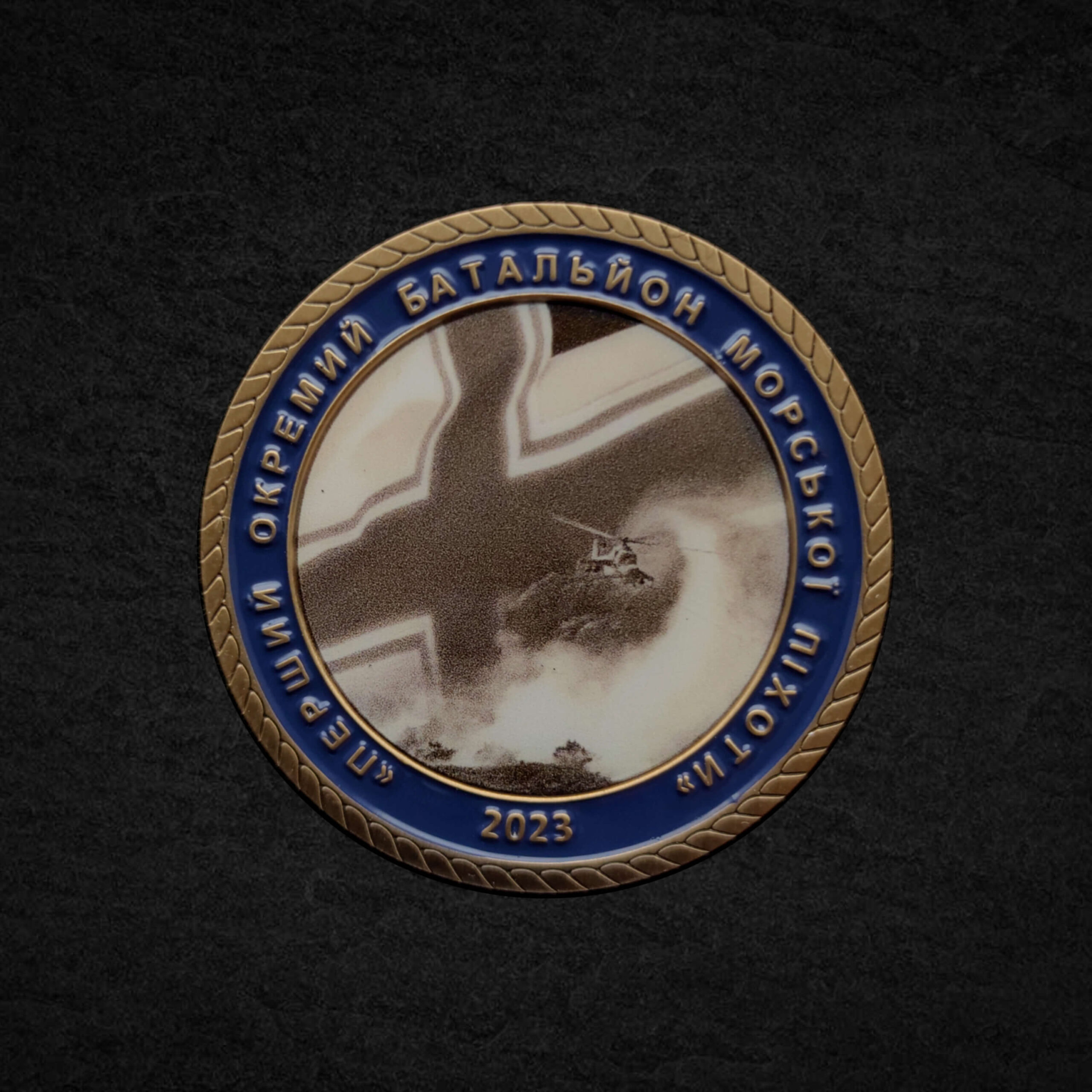The coin of the 1st Independent Marine Brigade is custom-made and not intended for sale