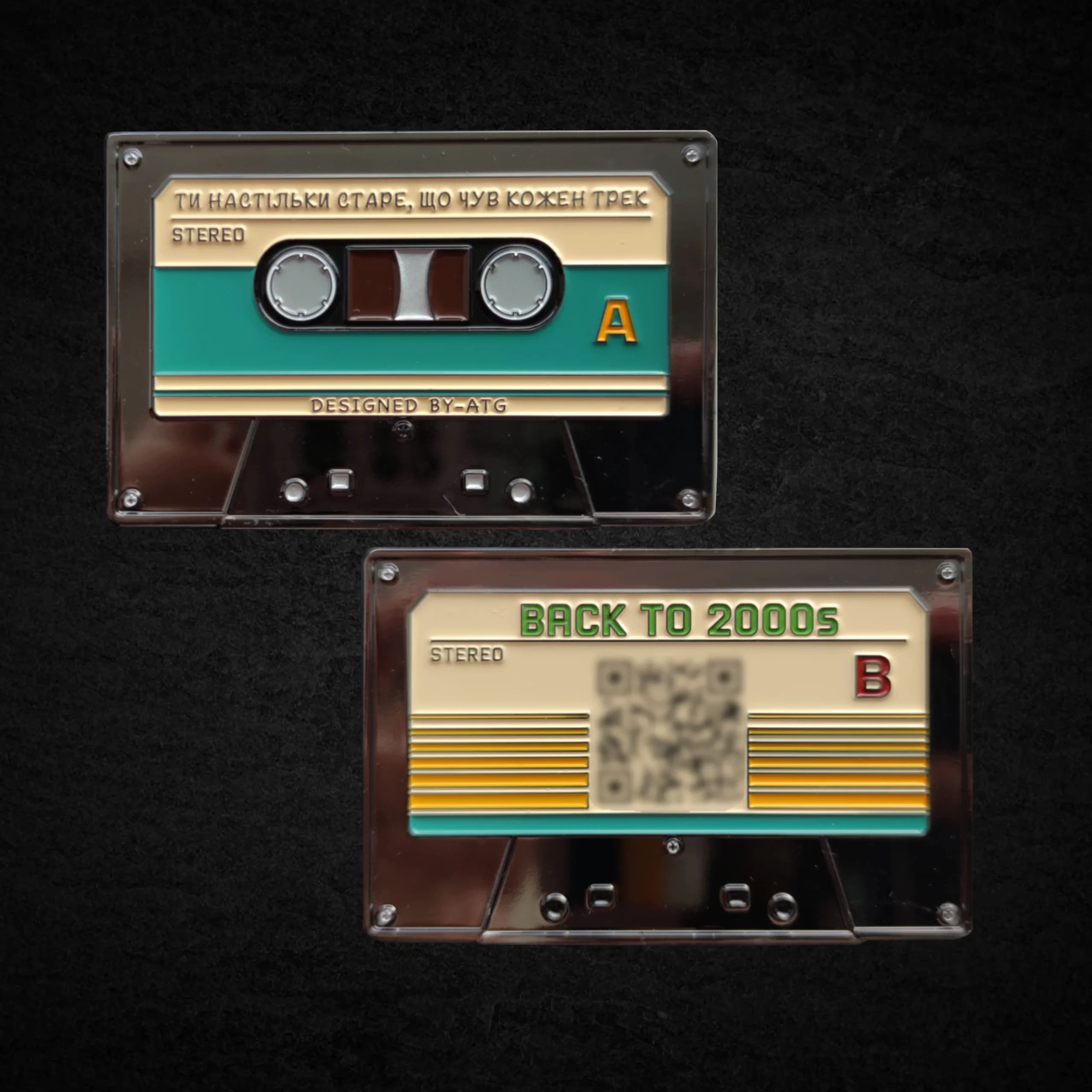 Коін у формі реальної аудіо касети. На ній є QR-код, який надасть Вам доступ до підбірки з музикою 2000 років. Надіюсь, що мій задум із цим виробом, дозволить отримати її власнику позитивні емоції. Які так потрібні в цей важкий час.