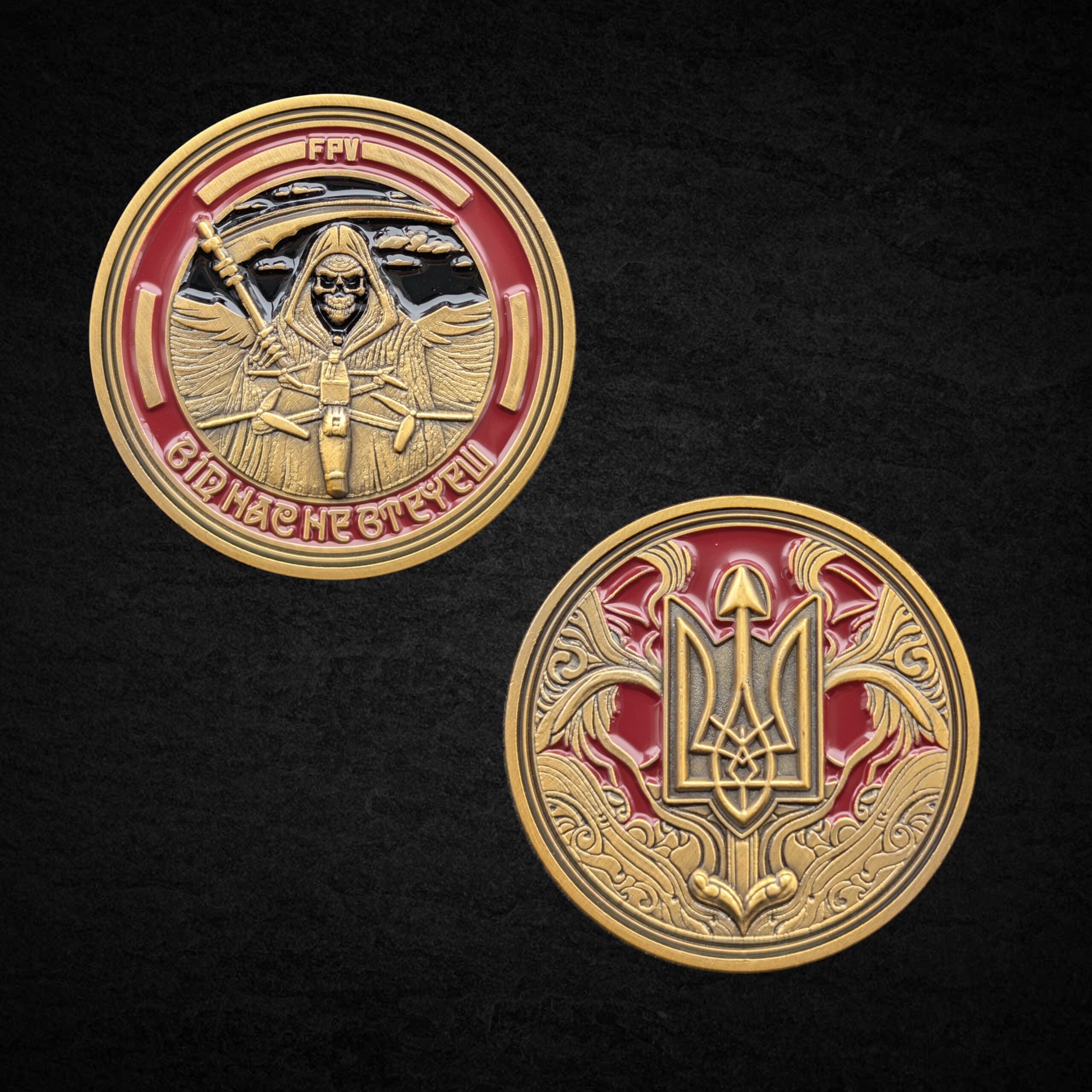 The coin was created to imprint into metal a significant contribution to the development of military technologies aimed at preserving Ukrainian statehood. The inscription on the coin “You won’t get away from us” implies the high efficiency of drones and masterful skills of pilots.