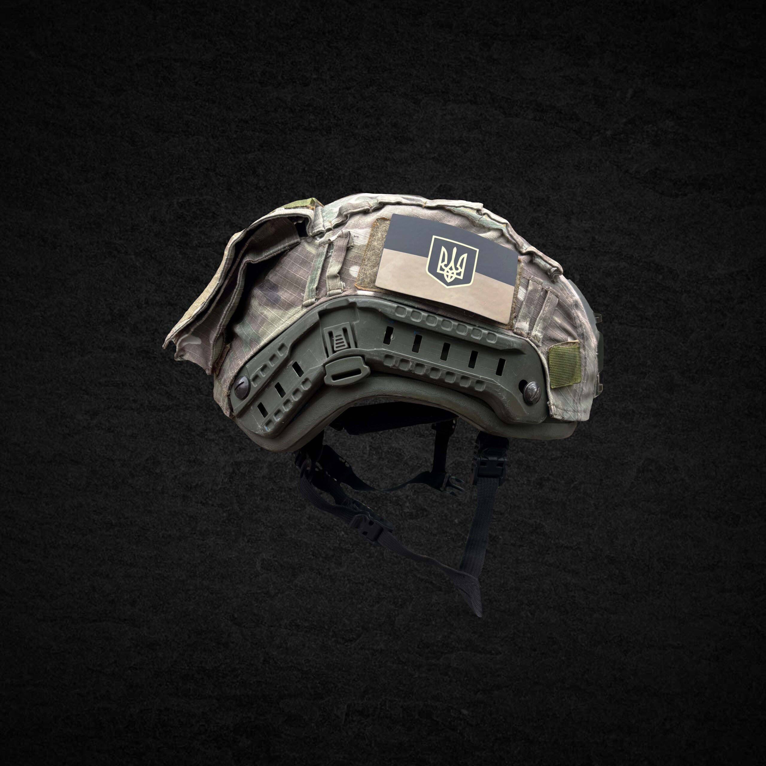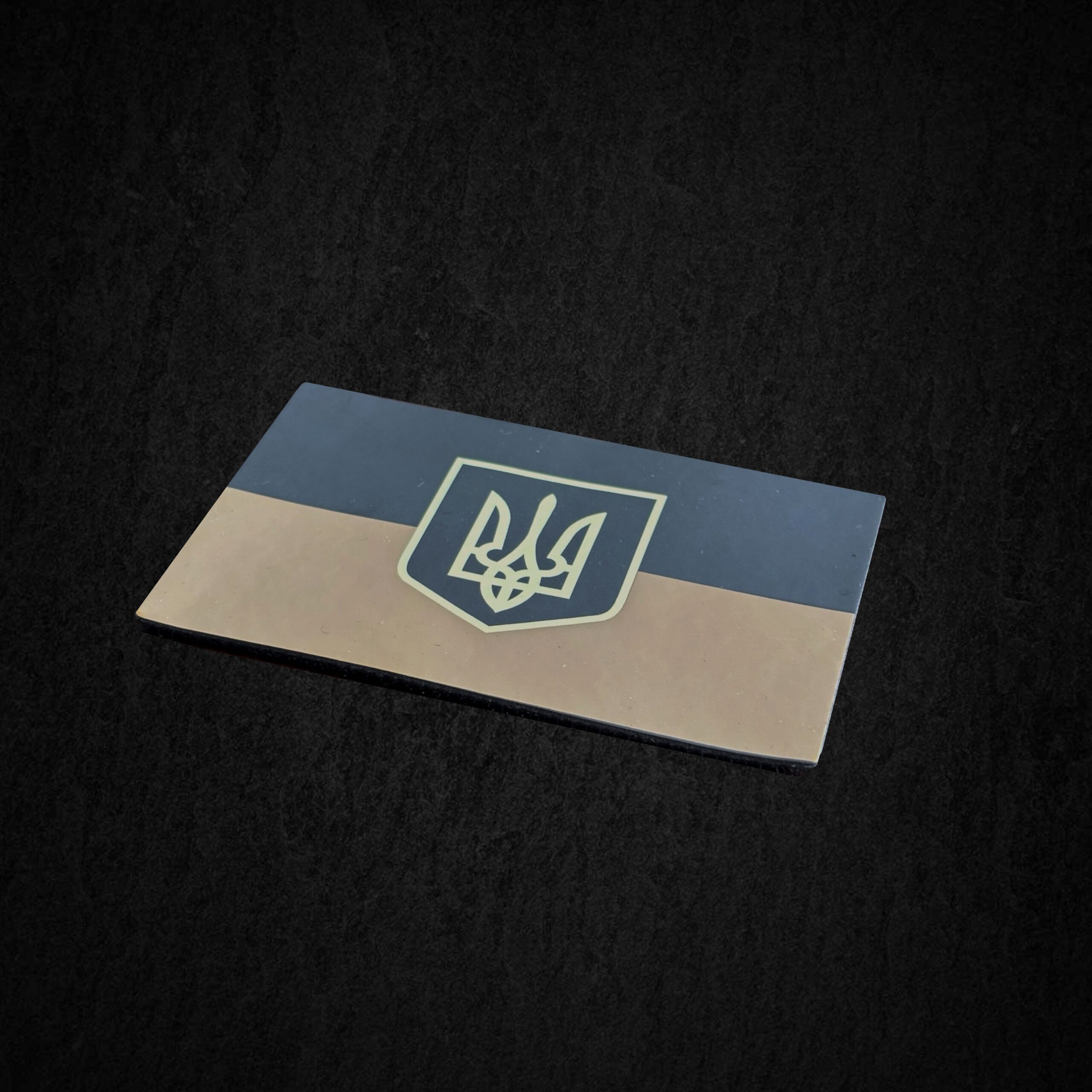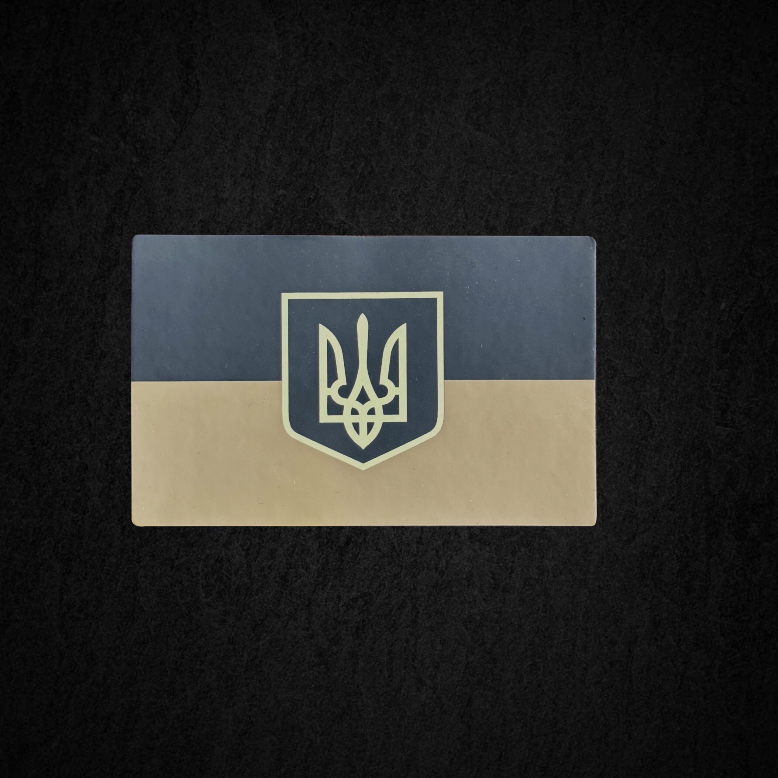 Патч розміром 5×8 см. Прапор України у захисних (польових) кольорах із тризубом по центру. Виготовлений з міцного зносостійкого матеріалу, лицьова частина має вологовідштовхуєче покриття. Зворотній бік — жорстка стрічка велкро для надійного кріплення до форми, рюкзака чи плитоноски. Ідеально підходить для бойових умов.